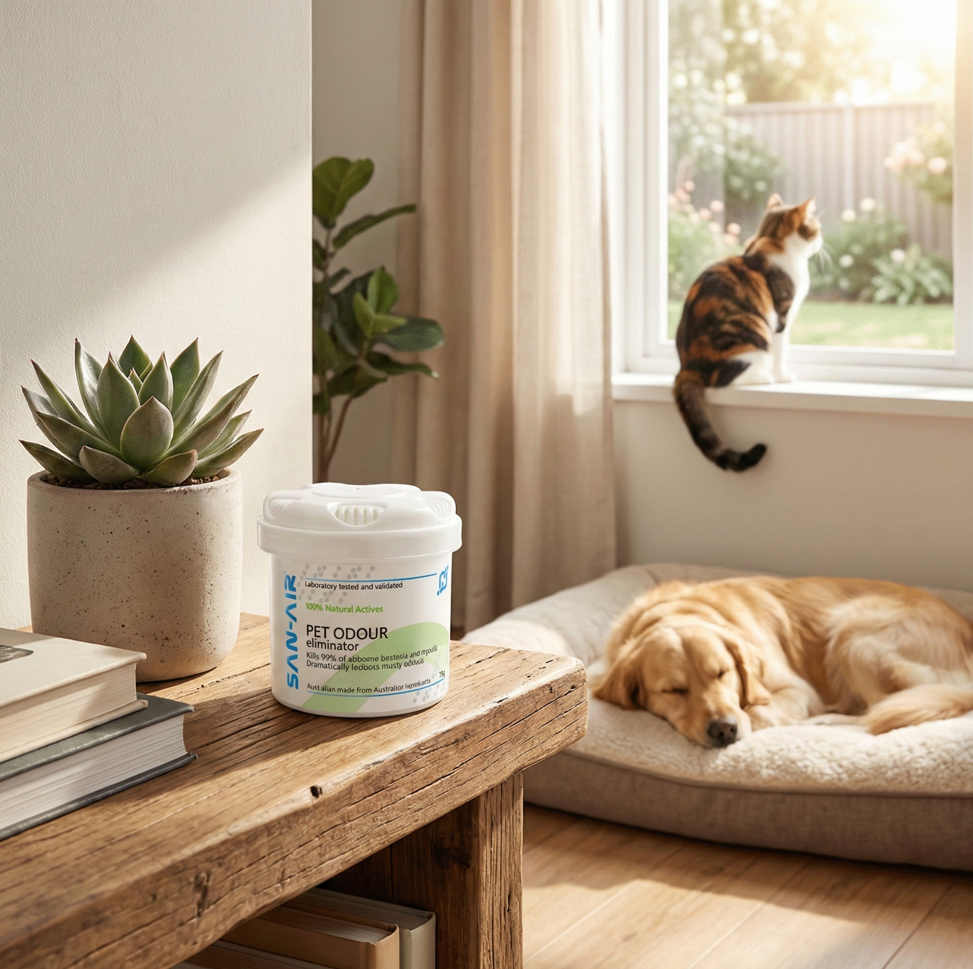Pet odours don’t stay in one room — they spread through the home. SAN-AIR helps neutralise stubborn pet smells at the source (litter trays, pet bedding, laundry and enclosed rooms) and supports fresher indoor air for your family — without masking fragrances.